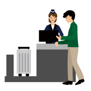 ①チェックインカウンターで受付
